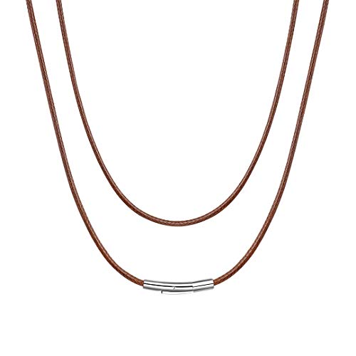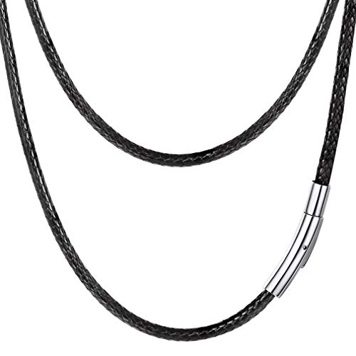 ChainsHouse läderhalsband flätad repkedja med rostfritt stål lås 2/3 mm -16 18 20 22 24 26 28 30 tum vattentät svart brun sladdkedja för män kvinnor, 71cm (28''), Läder, Ingen ädelsten