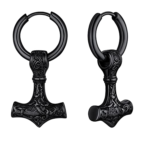 FaithHeart TE12805H-E Norska vikingörhängen för män, rostfritt stål tornhammare/korpsskalle/svärd/yxa hopörhängen guld/svart guldpläterad, nordiska smyckesgåvor, Rostfritt stål, Ingen ädelsten, 03.Viking Mjölnir-Svart