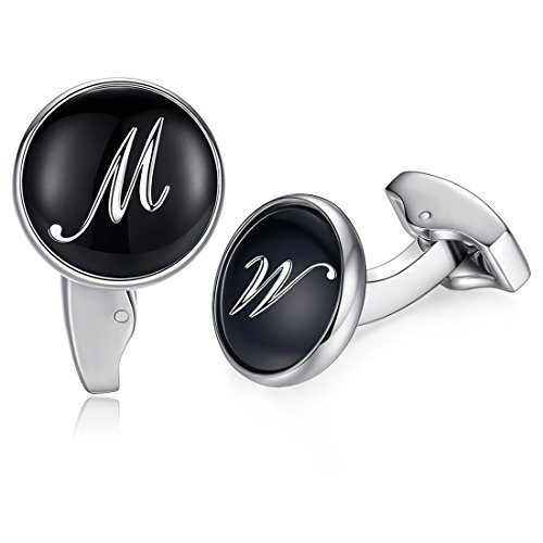 HONEY BEAR brev initialer bokstav manschettknappar män rostfritt stål bröllop manschettknapp svart, 15mm, Koppar, Ingen ädelsten