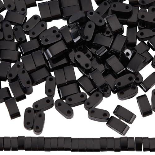SUNNYCLUE 1 låda 140 st Tila pärlor två hål fröpärlor mini liten ogenomskinlig rektangulär svart onyx ädelsten platt 2-håls japansk halvskuren distanspärla för smyckestillverkning armband örhänge