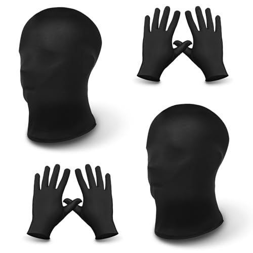 Alaoo Svart hel ansiktsmask halloween, 2 st morph ansiktsskydd med handskar, helhuvudskydd mask för cosplay halloween utklädningsfest kostym unisex män kvinnor