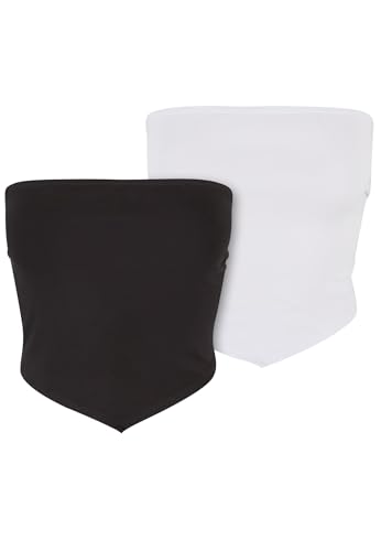 Urban Classics dam Top Ladies Knotted Bandeau topp 2-pack vit svart XS, Vit + svart, XS