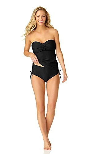 Catalina Dam Twist Front Bandeau Tankini baddräkt topp, Svart, L