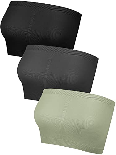 3 delar Bandeau BH kvinnor stretch axelbandslösa bralettes icke vadderade stretch topp tub BH för kvinnor flickor, Svart, mörkgrå, olivgrön, L
