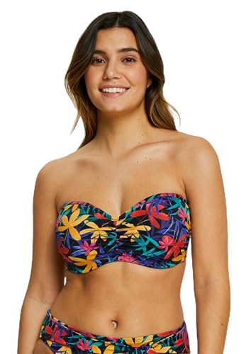 SANS COMPLEXE, Bandeau baddräkt topp med bygel, modell Island Dream, blommig svart, 85D, Svart blommig, 70D