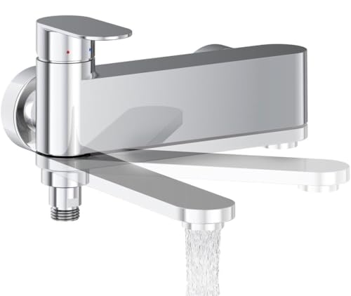 Badkarsblandare Svart Badkarsarmatur med 5 Olika Lägen Handdusch Väggmonterad Duschblandare Enhands Badkar Blandare Badrum Badkarskran med Duschhållare och Duschslang (Svart)