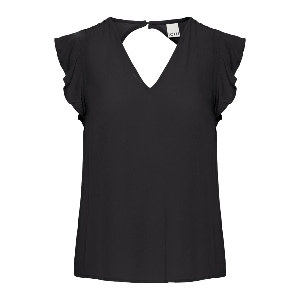 Ichi, Blusar & Skjortor , Dam, S, Svart V-ringad blus med volangärmar