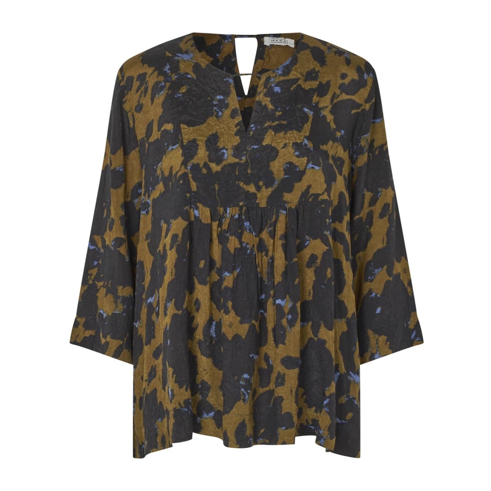 Masai, Blusar & Skjortor , Dam, S, Tryckt Svart Blus med V-Hals