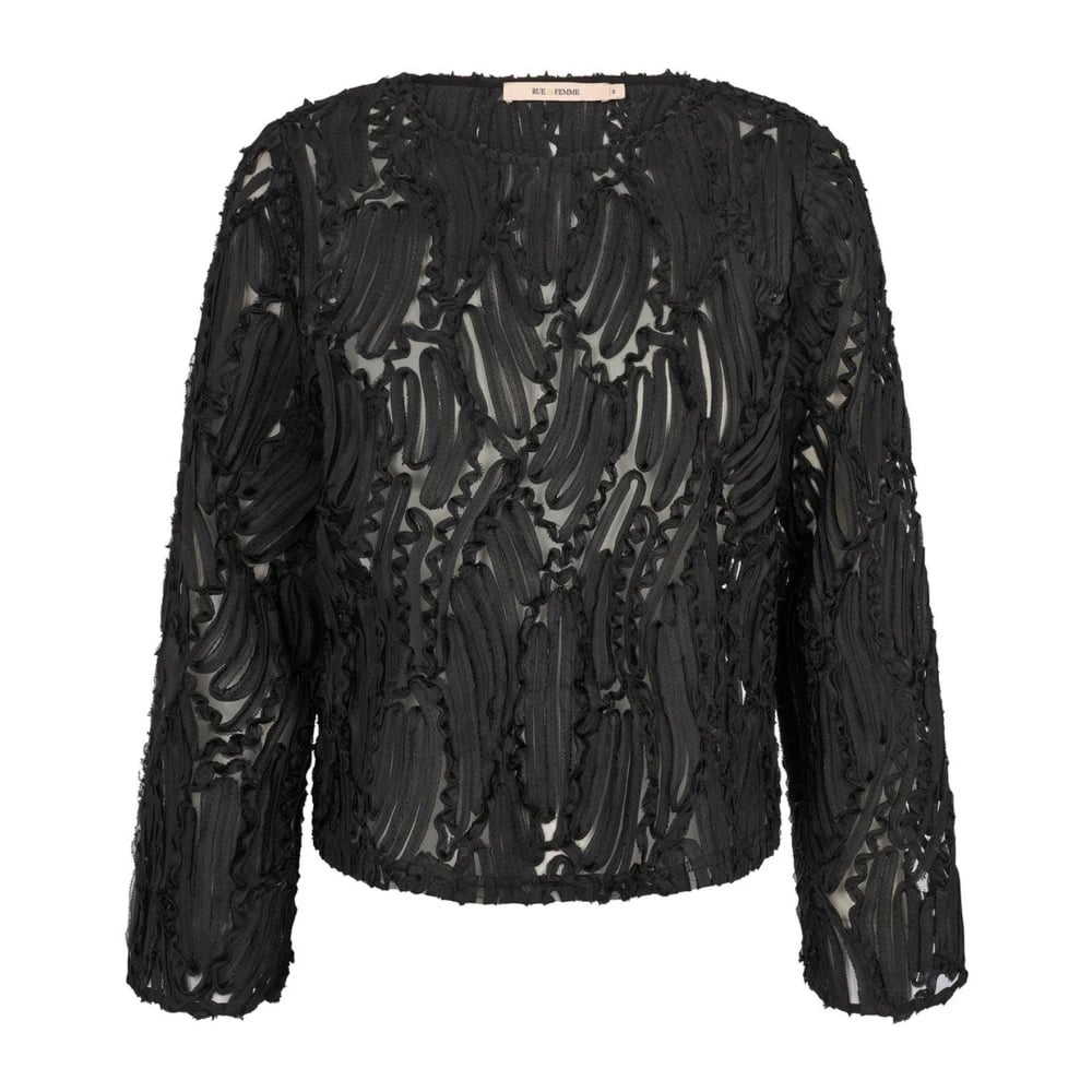 RUE de Femme, Blusar & Skjortor , Dam, S, Polyester, Strukturerad Svart Blus med Långa ärmar