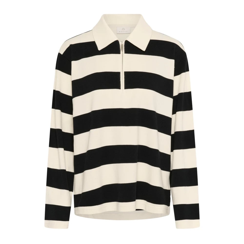 Kaffe, Toppar , Dam, XS, Bomull, Randig Polo Blus Svart/Vit