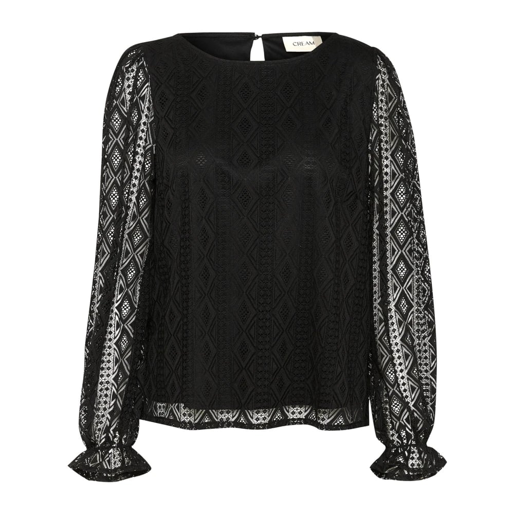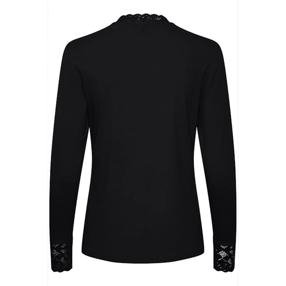 Cream, Toppar , Dam, M, Svart Jersey Blus med Spetsdetaljer