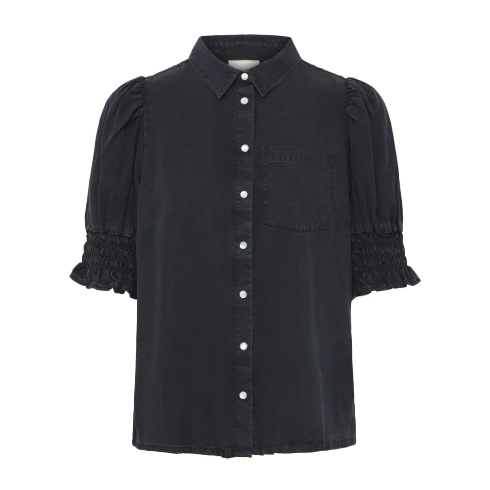 Ichi, Blusar & Skjortor , Dam, S, Bomull, Svart Tvättad Blus med Puffärmar