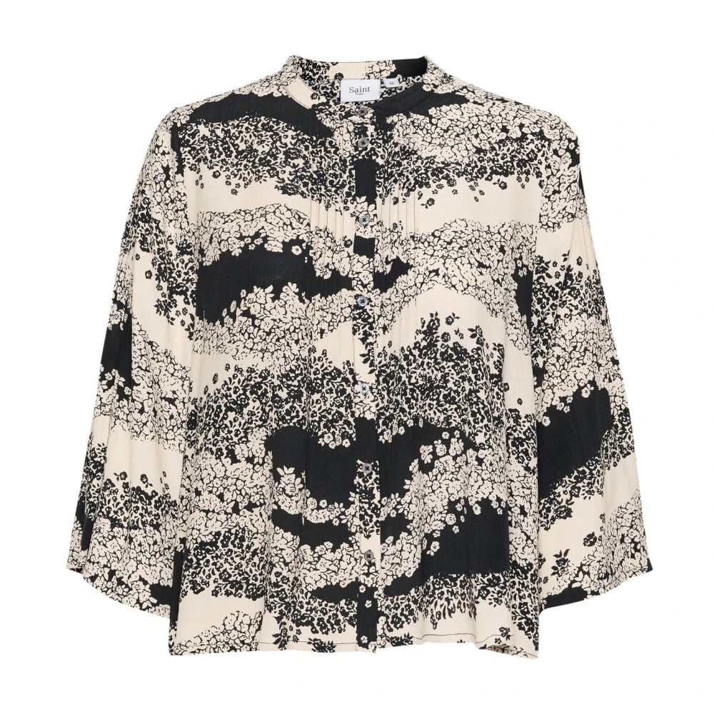 Saint Tropez, Blusar & Skjortor , Dam, 2Xl, Svart Vågiga Blommor Blus IselinSZ