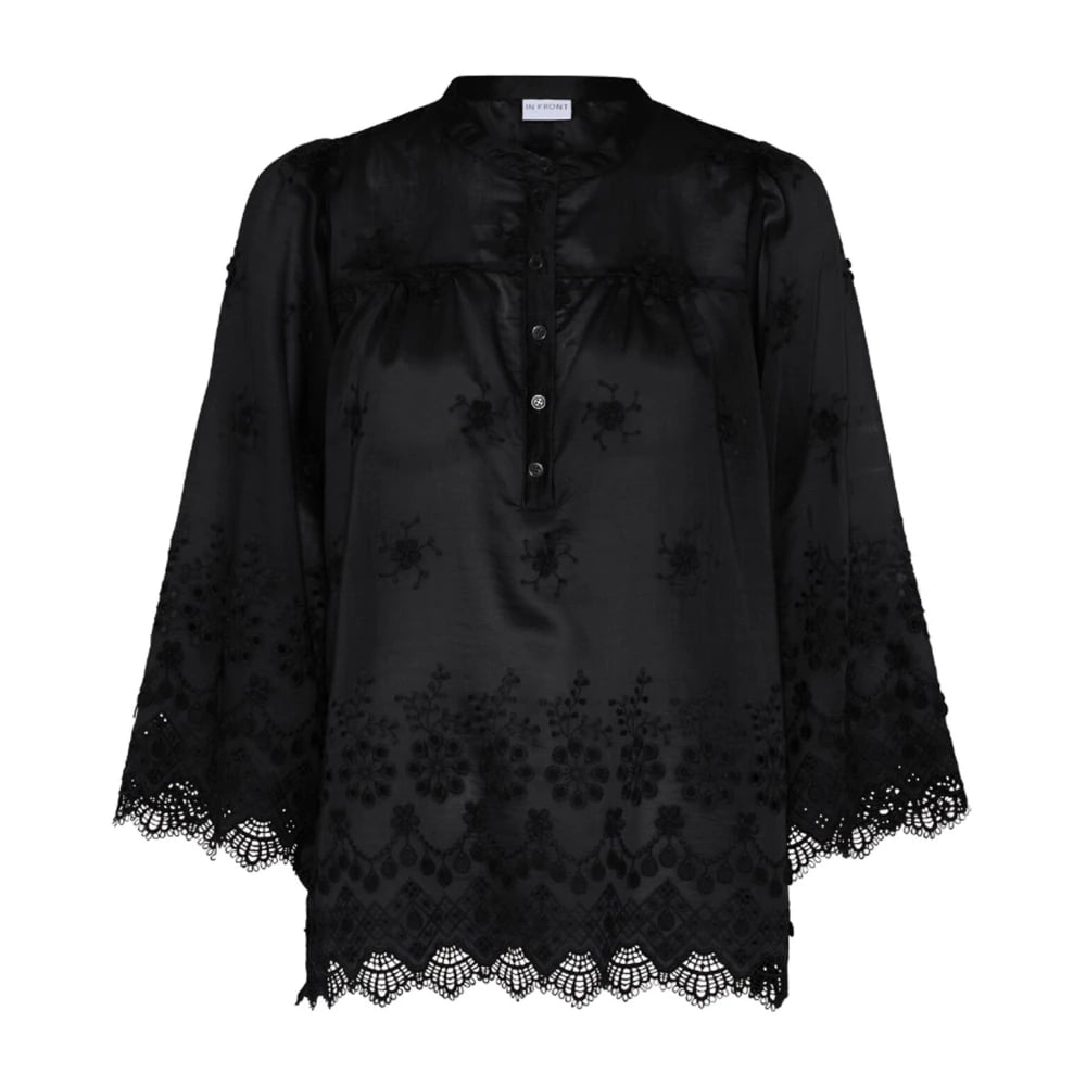 IN Front, Blusar & Skjortor , Dam, XL, Bomull, Svart Blus med Spetsdetaljer