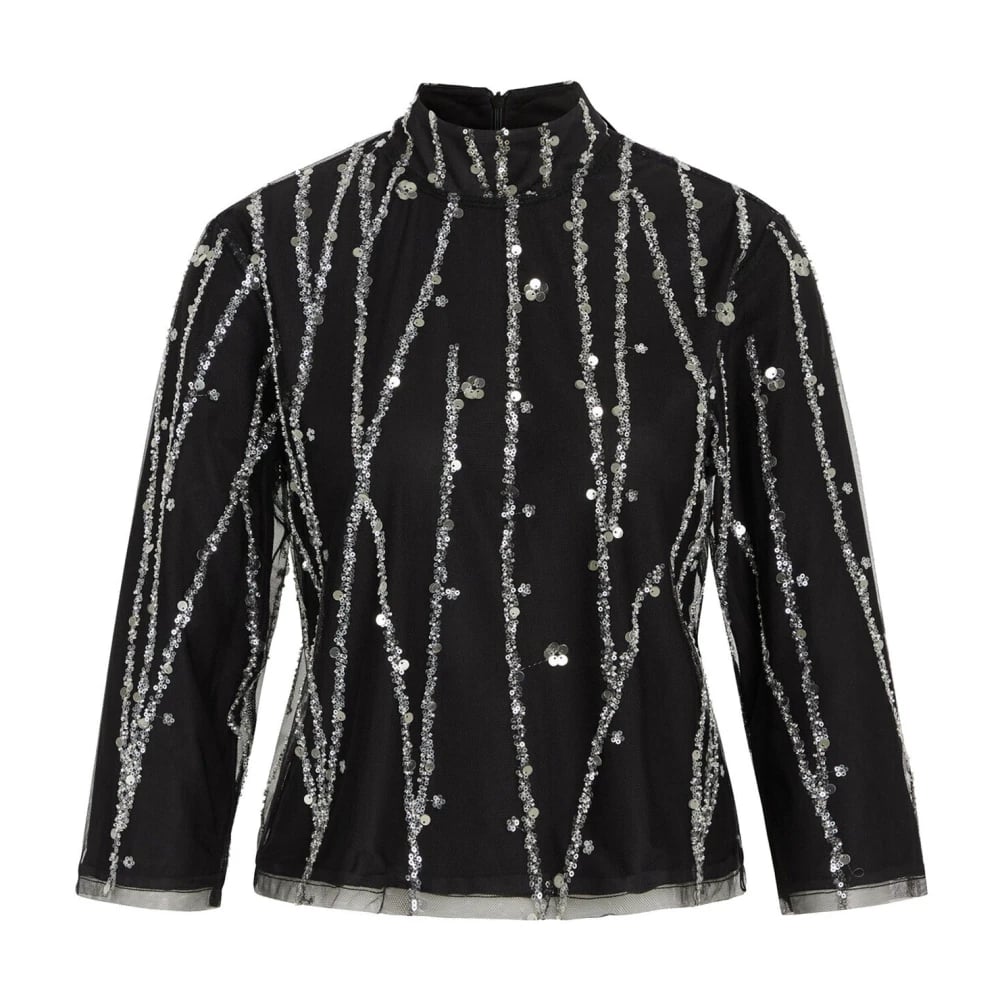 Bruuns Bazaar, Blusar & Skjortor , Dam, XL, Polyester, Svart blus med silverdetaljer