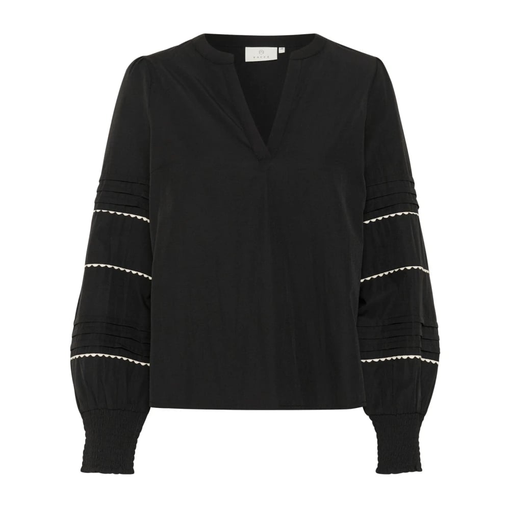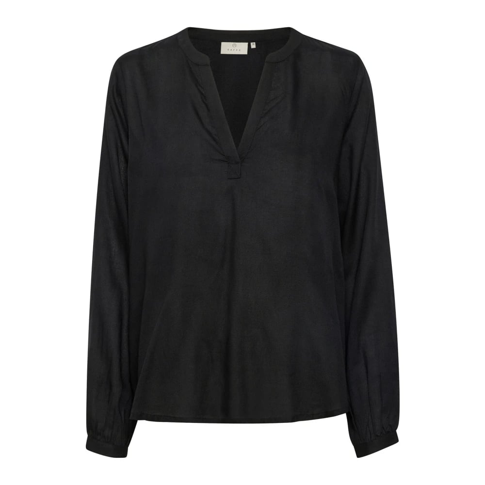 Kaffe, Blusar & Skjortor , Dam, S, Svart Djup Blus med V-ringning