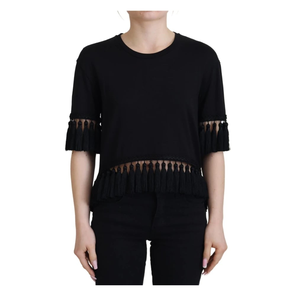 Dolce & Gabbana, Toppar , Dam, L, Bomull, Svart Bomull Tassel Blus Topp