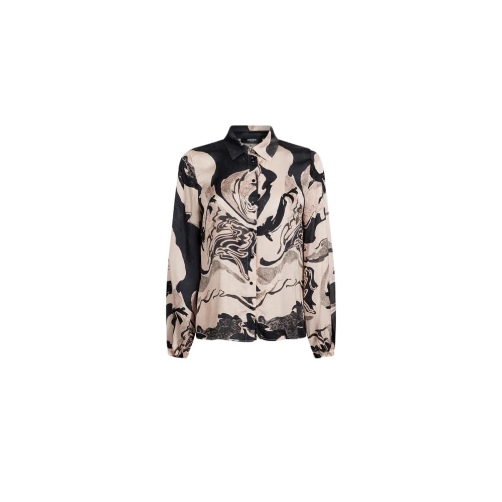 Kaffe, Toppar , Dam, 2Xl, Polyester, Abstrakt Tryck Blus Svart/Beige Blomma