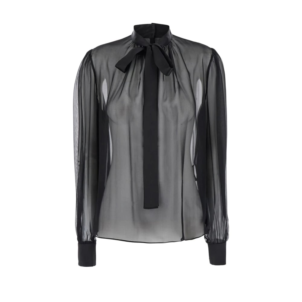 Dolce & Gabbana, Blusar & Skjortor , Dam, M, Svart Silke Pussybow Blus