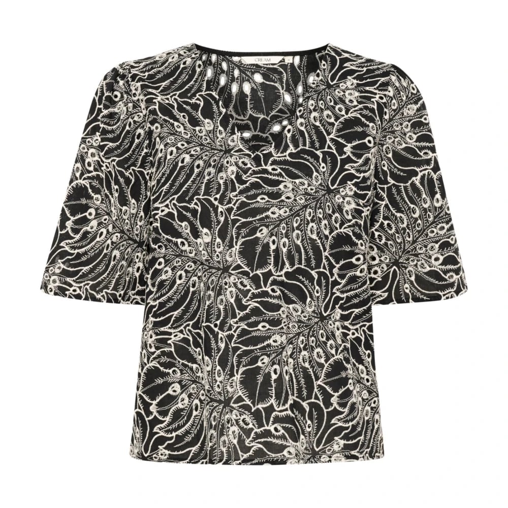 Cream, Blusar & Skjortor , Dam, 2Xl, Bomull, Svart Björk Broderi Blus