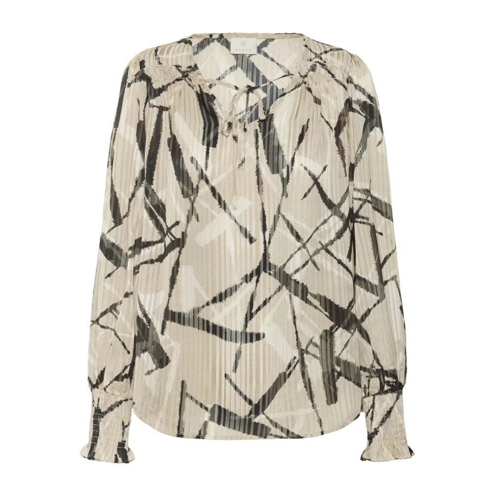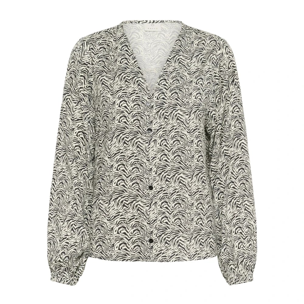 Kaffe, Blusar & Skjortor , Dam, M, Fjädergrå/svart grafisk blus