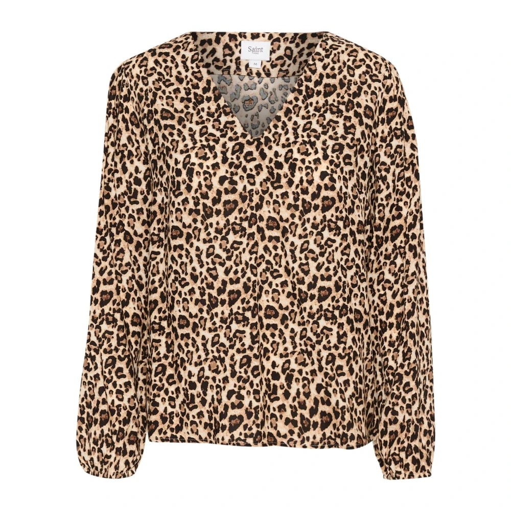Saint Tropez, Blusar & Skjortor , Dam, L, Leopardmönstrad Svart Blus