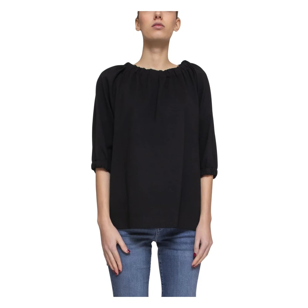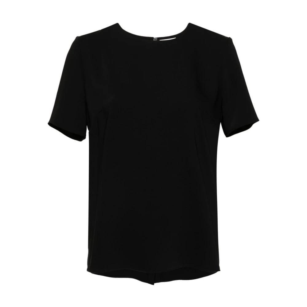 Msgm, Toppar , Dam, XS, Svart Blus med Rund Hals och Sidoslits