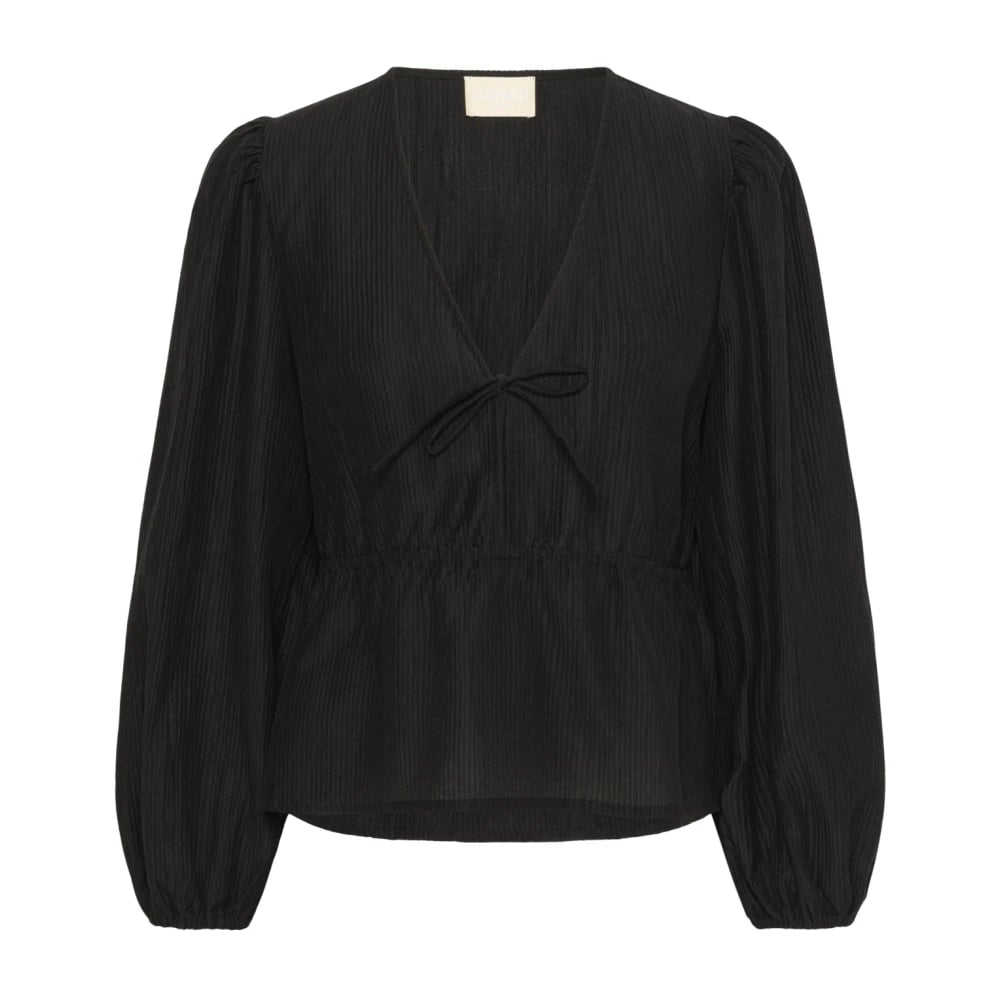 Copenhagen Muse, Blusar & Skjortor , Dam, S, Polyester, Elegant Svart Blus med Slåsdetalj