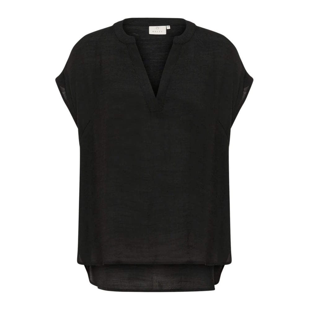 Kaffe, Blusar & Skjortor , Dam, XS, Svart Djup Blus med V-ringning