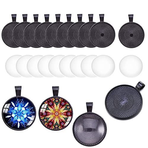 HERZWILD rund infattning hänge brickor, legering blank infattning hänge bricka diameter med transparent glas (svart)