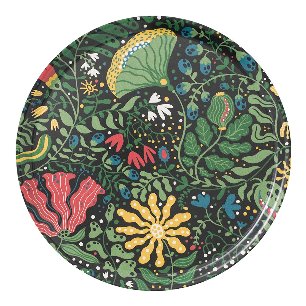 Arvidssons Textil Trädgård Rund Bricka Svart/Grön