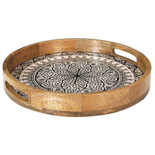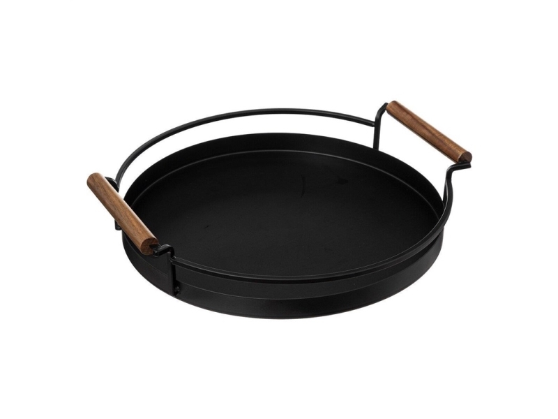 5Five Svart Rund Bricka, Handtag I Akaciaträ, Ø 36 Cm
