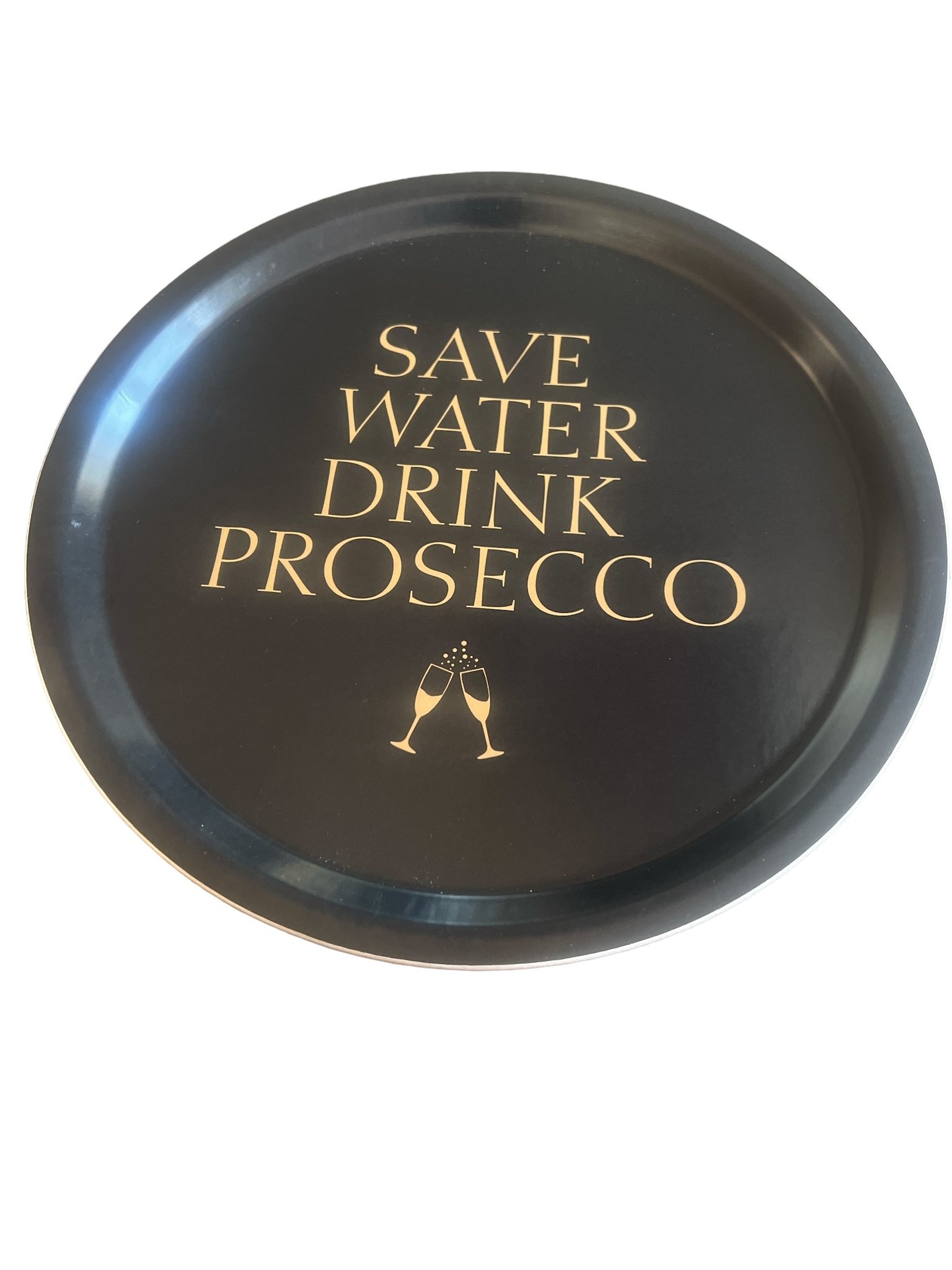 Bricka rund 31 cm, SAVE WATER, svart/vit text