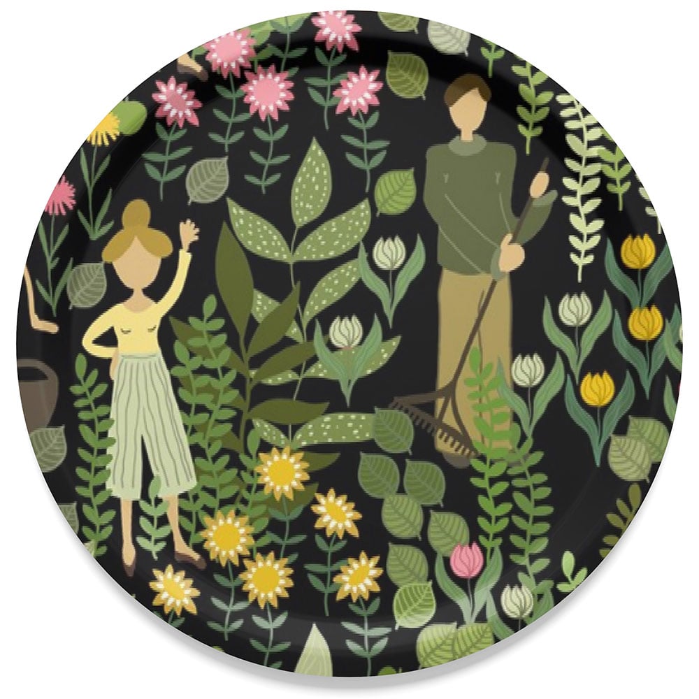 Trädgård Svart/Grön Rund Bricka Arvidssons Textil