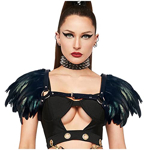keland Damer naturliga fjädrar axel scrubs sjal färg regnbåge halloween del scarf cape topp 2 st, Z-svart-001, one size