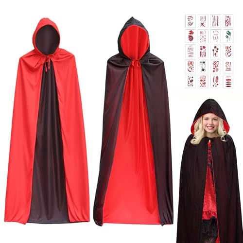 OUQIWEN Vampyr cape vuxna, halloween vampyr kappa med huva, svart röd dubbelsidig, cosplay vampyr vuxen för halloweenkostym (150 cm)