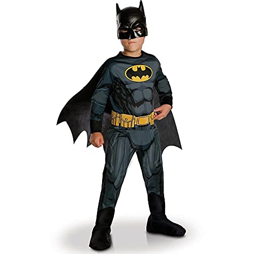 RUBIE'S Officiell DC BATMAN Klassisk barndräkt, storlek 7–8 år, utklädnad med tryckt jumpsuit, bälte, stövelöverdrag, avtagbar cape och mask, halloween, karneval