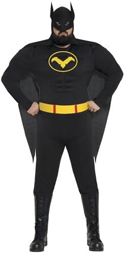 FIESTAS GUIRCA | Svart hjältedräkt för vuxna män (56-58/XXL) - cape, balaclava, bälte och jumpsuit - perfekt för superhjältar och stygga fester, halloween och karneval - svart