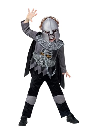 Smiffys Deluxe skelett riddare kostymtopp med EVA-bröst, cape, byxor och EVA-mask, halloween barn maskeradklänning, skelett utklädningsdräkter