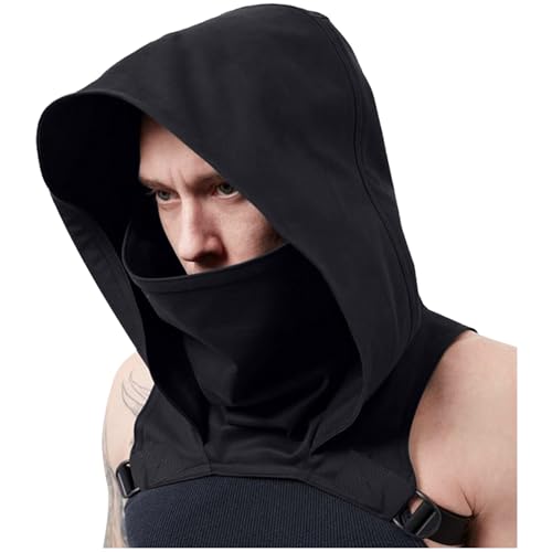 keland Cyberpunk skurk gugel halsduk med huva gotisk huva cape hatt för halloween ninja cosplay (B-svart)
