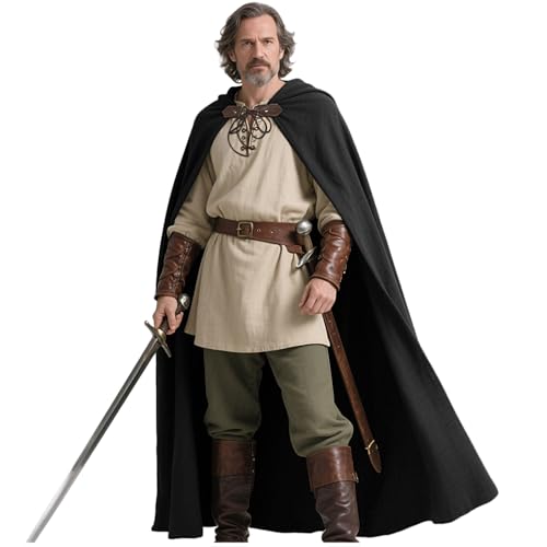 GraduatePro Huva kappa med ärmar cape män kvinnor tunika riddare Jedi fin medeltida lång halloween cosplay vuxen kostym svart, Svart, M