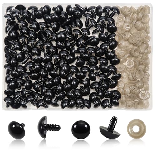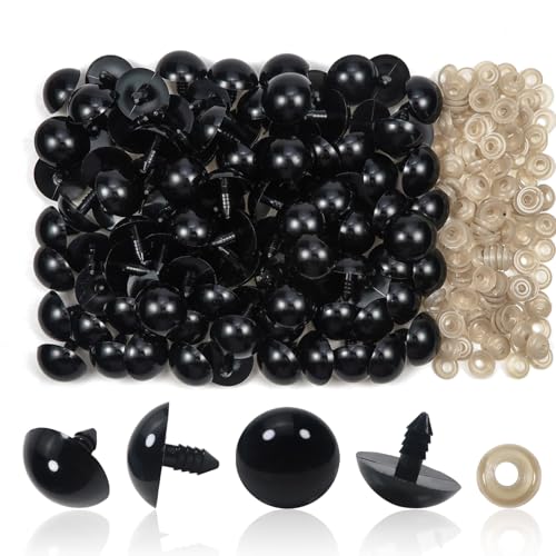 TOAOB 150 stycken säkerhetsöga 12 mm svart plast pyssel dockor ögon knappögon med brickor för virkade djur docka marionett plyschdjur nalleögon