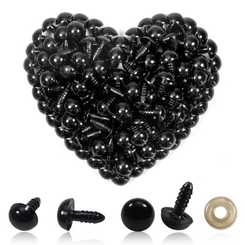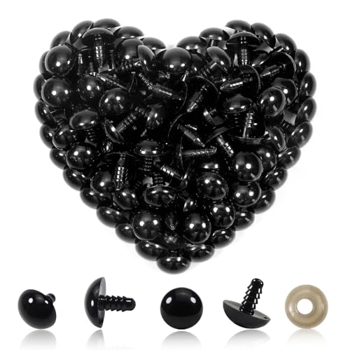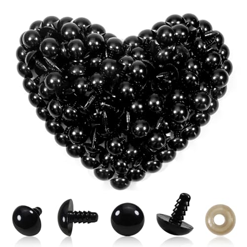 TOAOB Virkade Ögon Docka Svart 150 Stycken Dockögon Med Brickor 12 mm Säkerhetsögon för Virkade Djur för Hantverk Dockor Sömnad