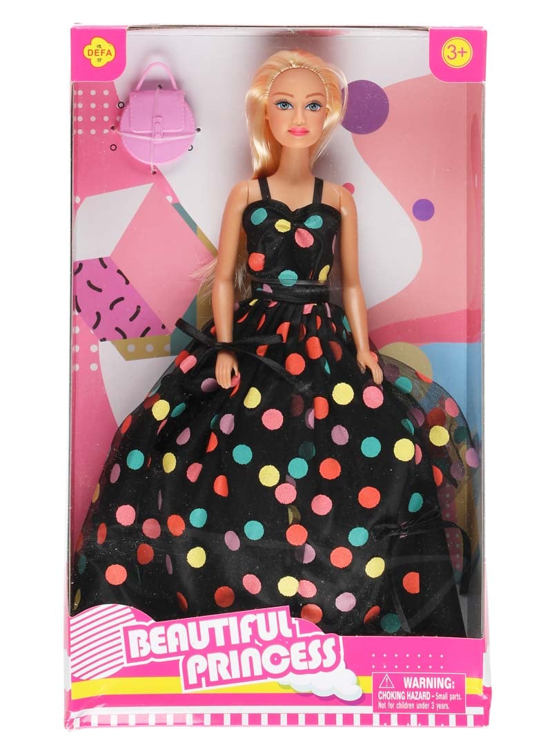 Lean Toys Anlily Docka Balklänning Svart Och Guld Rörliga Lemmar För Blont Hår Hår