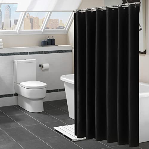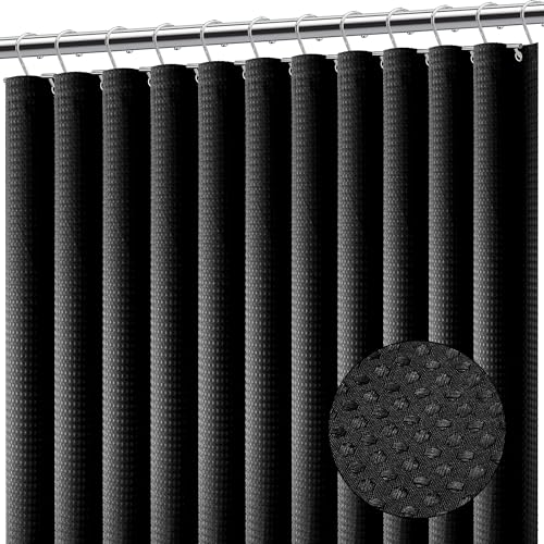 PANGSINNE Svart duschdraperi 256GSM kraftigt våffelvävt badrum duschdraperier, viktat tyg duschdraperier för hotell spa lyxigt polyester duschdraperi med 12 krokar, 72 B x 72 H