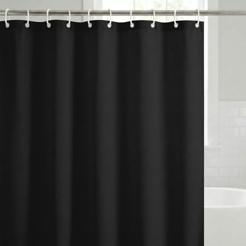 Americanflat 71 x 74 solitt svart duschdraperi – 100% polyester duschdraperi – vattentåligt baddraperi med metallöljetter och 12 ringar för duschdraperi – långa duschdraperier för badrum