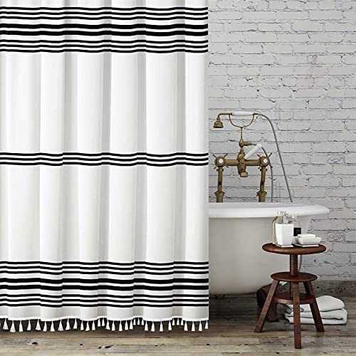 Seasonwood svart och vitt duschdraperi modernt bondgård duschdraperi tofs extra långa duschdraperier, vattentätt 182 x 234 cm
