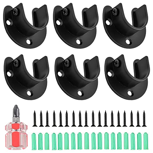 WeqeYent 6 st garderobspolsuttag, flänssats för garderob med skruvar och skruvmejsel, slitstarka ändstöd, u-formad garderobsstång för garderob och duschdraperi (svart)