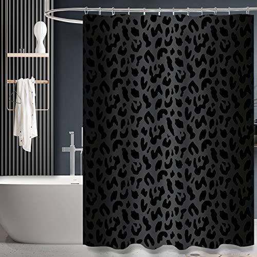ZTTXL duschdraperi med leopardtryck (183 cm x 183 cm), svart leopardtryck duschdraperi, polyestertyg tryck duschdraperi set för badrum med krok (D2)