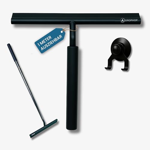 DROPHOP Utdragbar duschskrapa svart med teleskopstång (100 cm) – fönstertorkare och glasavdragare dusch utan borrning – silikontorkare bad med sugkopp